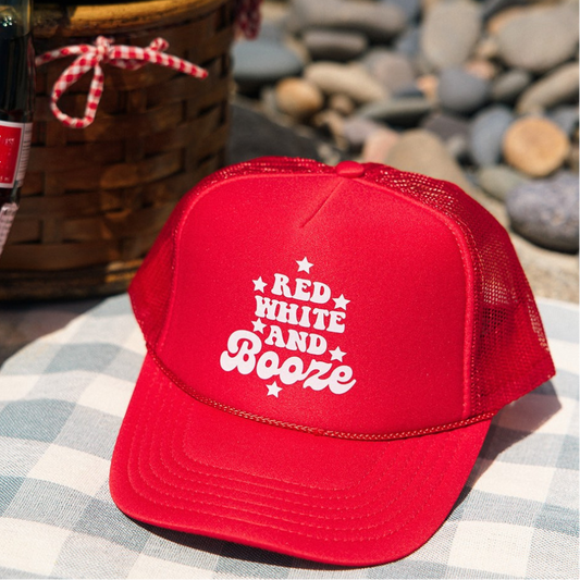 Tanned & Tipsy - Red/White Vintage Trucker Hat