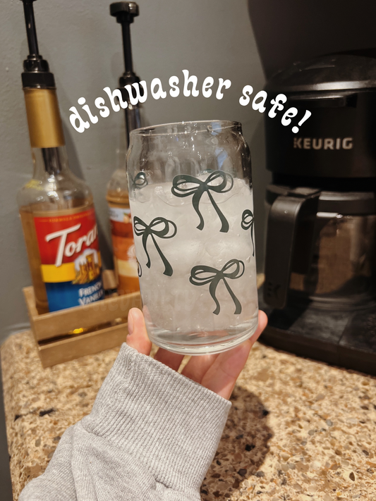 Green Bow 16 oz Glass Can Cup