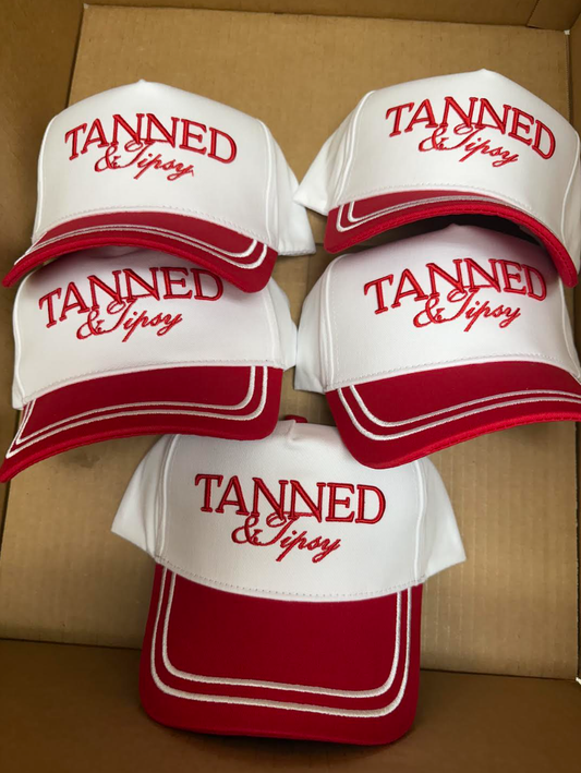 Tanned & Tipsy - Red/White Vintage Trucker Hat