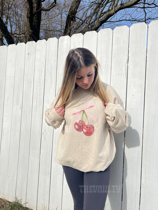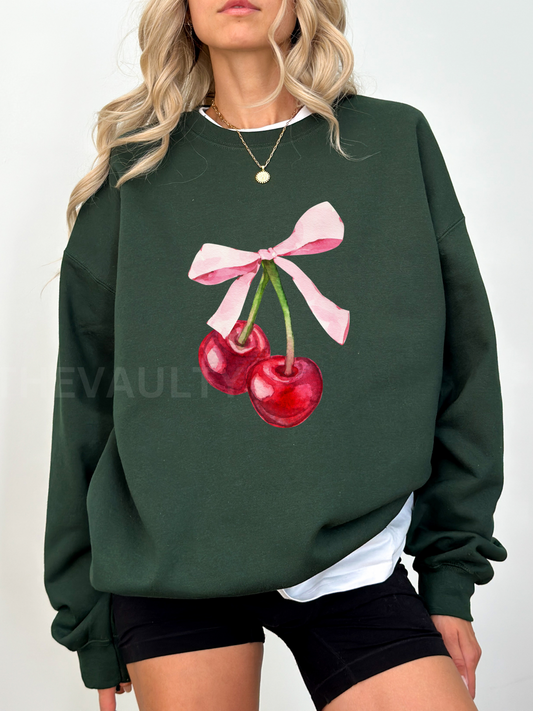 Embroidered Cherry Bow Crewneck Sweatshirt